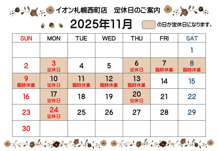 ※都合により営業時間の変更、お休みを頂く場合があります。